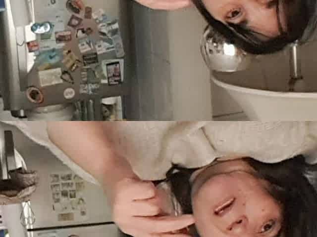 BBW MILF Combing Her Hair in the Hotel Shower