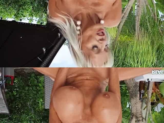 Perverted Old Woman With Fake Boobs Fucks Ricky By The Pool