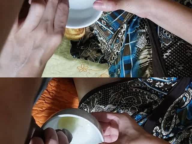 Sexy Girl Drinks Pee in a Cup While Eating a Cookie