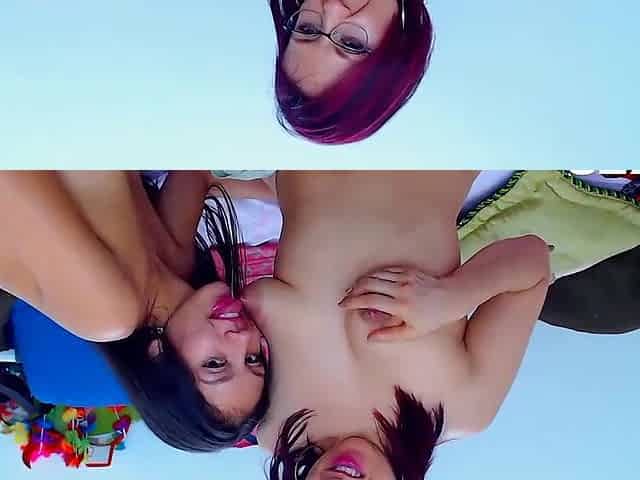 Lesbian licking of Alex and Suzie Sparklez's shaved pussies