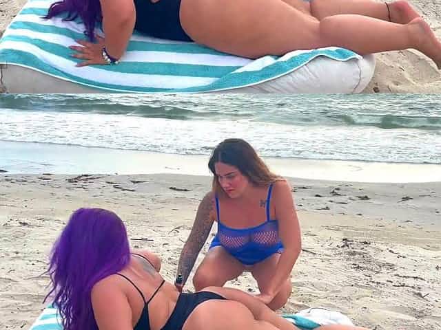 Margo T and Lily Grey - lesbo - brunette hair - butt licking - bikini - masturbation - aged - outdoors - OYLL