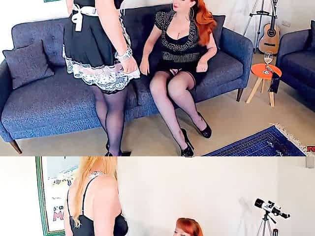 Redhead BBW Wife and Kim Play Together with a Strap-on Before Sucking Cock and Peeing