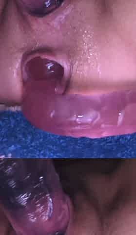 Double Ended Dildo All the Way up Ass While Huge Dildo in Pussy