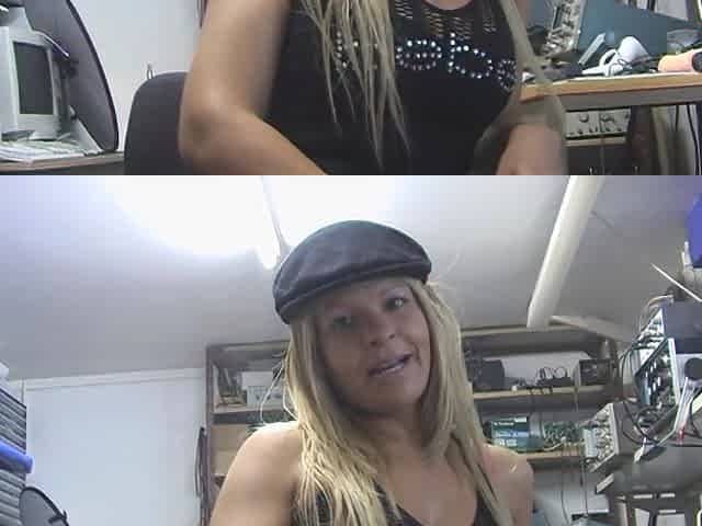 Skinny golden-haired aged shows herself on camera