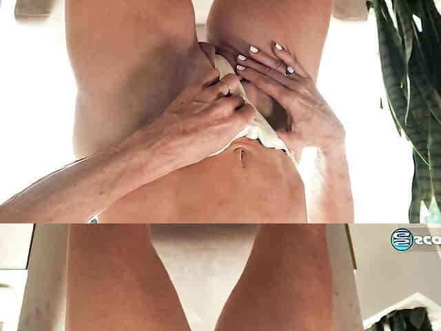 With the Panties on Her Head Pussy Juice Makes Her Cum Instead