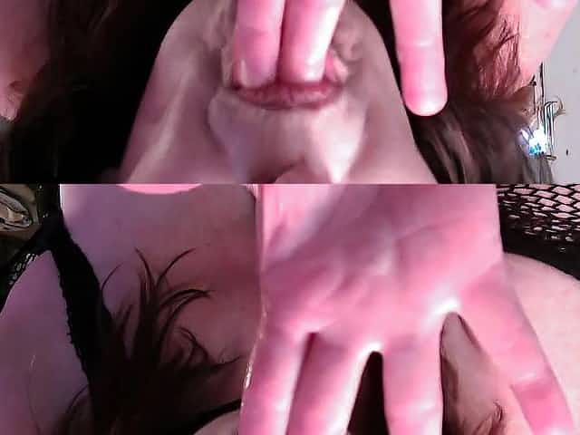 Mature woman wearing lingerie enjoys while fingering her cunt