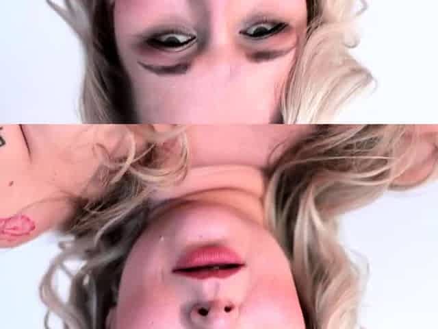 Close-up of girl moaning and enjoying a wild ride