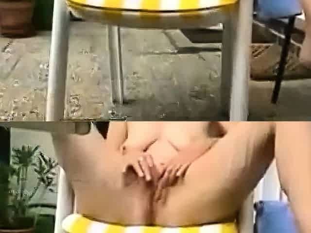 Mature girl outdoor masturbation on the patio