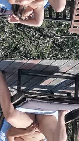 Natalie K goes on the roof and in an odd moment toys her cunt