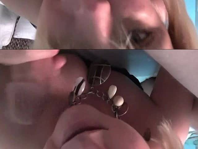 Solo blonde mature lady fucks machine