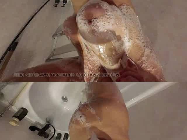 Dad wank in shower. Soapy, unshaved, grooming, Voyeur webcam.