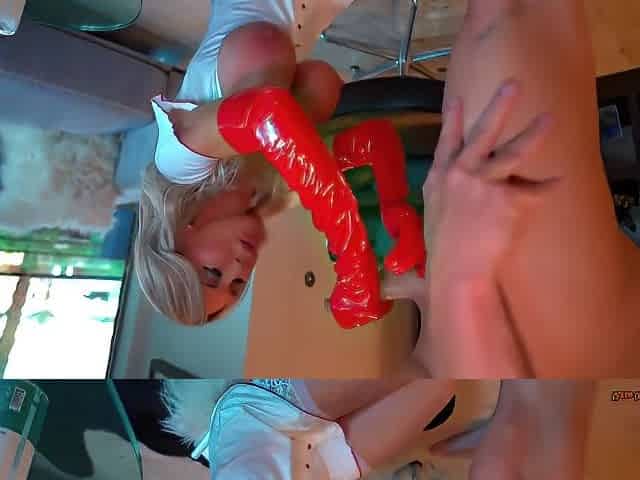 Perfect pink pussy, big dildo