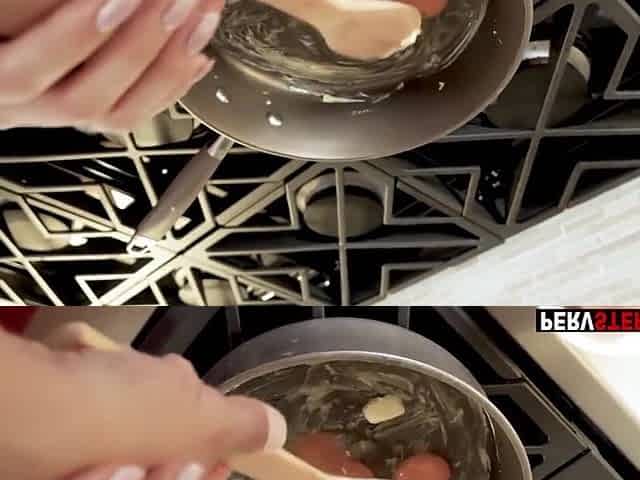 Una shows off her curves in the kitchen