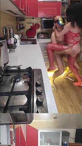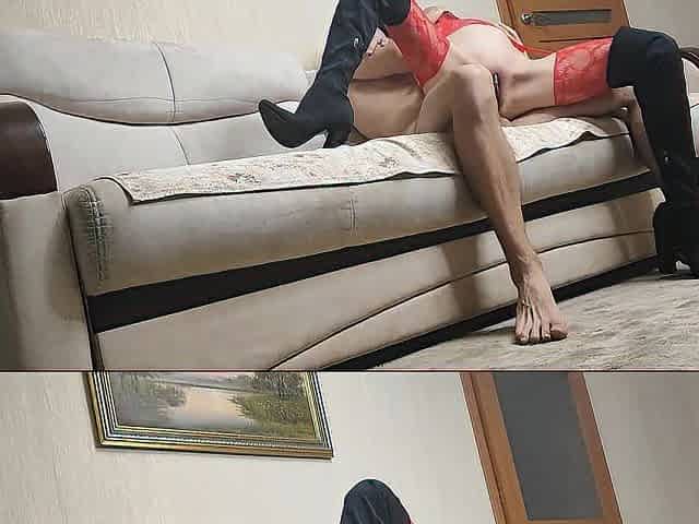 My Mother-in-law in a Beautiful Red Dress and Black Stockings Helped Me on Her Beautiful Tummy!
