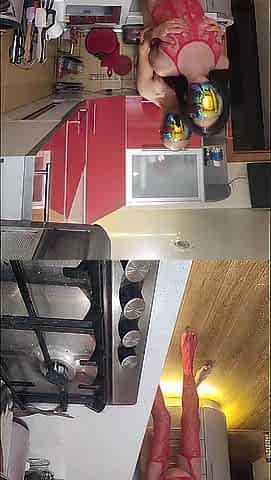 Breasty older woman cooking and banging show live