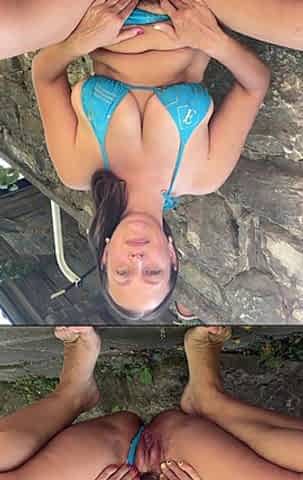 Horny Mature MILF with Big Tits and Sexy Legs Show Her Pussy and Her Sexy Ass Outdoor at the Pool