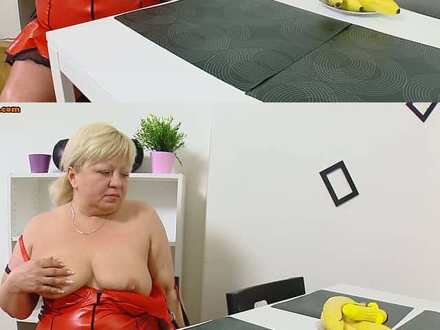 Broad assed blond mom gives titfuck to banana with oversized hoters