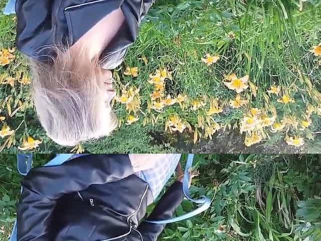 Martina West in her garden showing her sexy legs