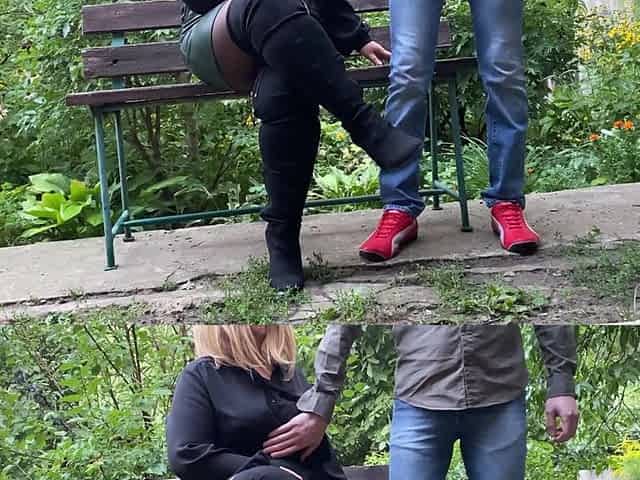 I Cum on My Mother-in-law on Her Gorgeous Ass in Pantyhose Outdoors