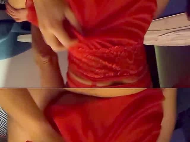 stepmom in soaked red pants fingering herself finishing and showing on camera