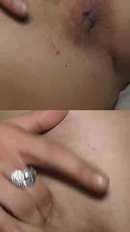a hotty with pretty titties bangs herself with a finger in the butt and ends up squirting