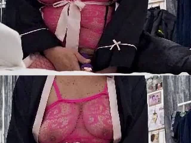 Cindy Cincinnati in fishnet stimulates her beaver and enjoys anal fingering