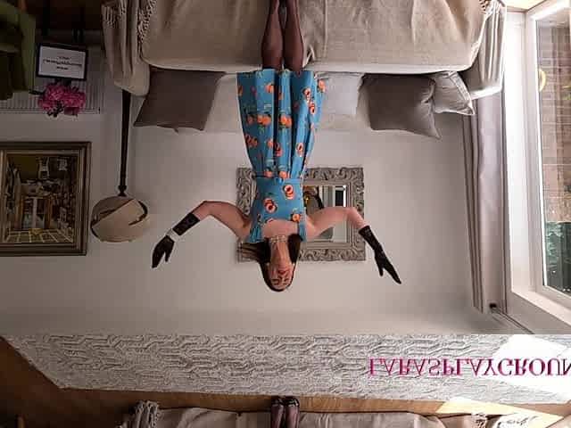 British Lara Latex Shows her Pussy through a Peachy Dress