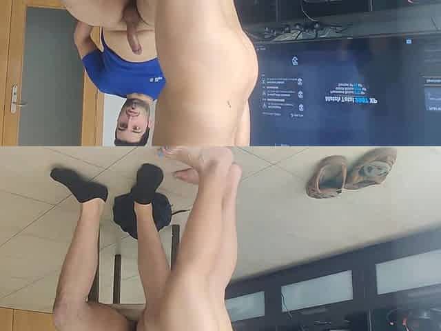 Naughty mom with a juicy booty pounds me on a chair when she caught me pleasuring myself