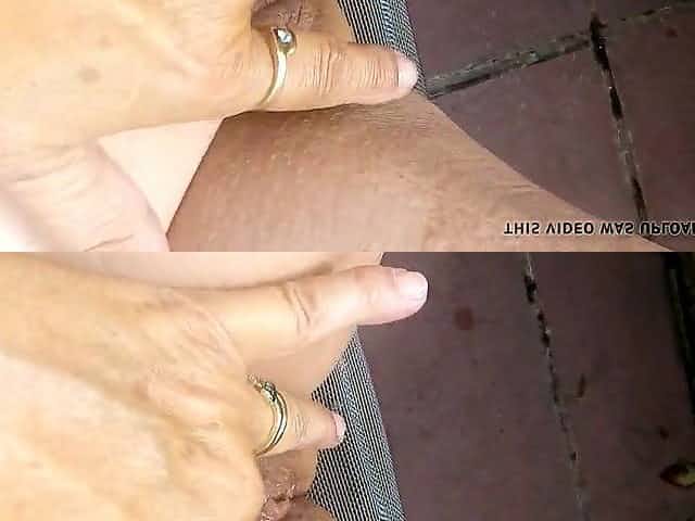 Mature Woman Rubs her Hairless Twat until it Squirts