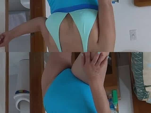 My wife masturbates in front of her college  and lets him cum on her large booty