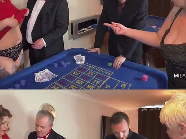 3 British MILFs slide out of evening dresses at the casino