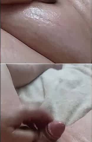 Masturbation with close up spunk flow
