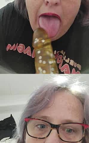 Mature Amateur Fucks Dildo with Her Big Natural Saggy Tits