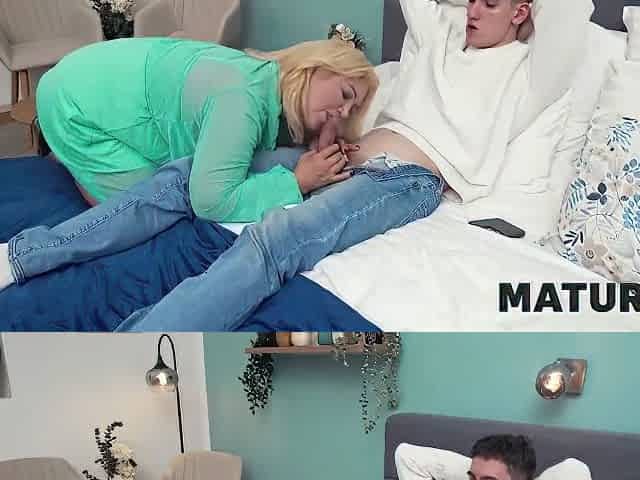 Horny Cougar Satisfies Dick With Tongue