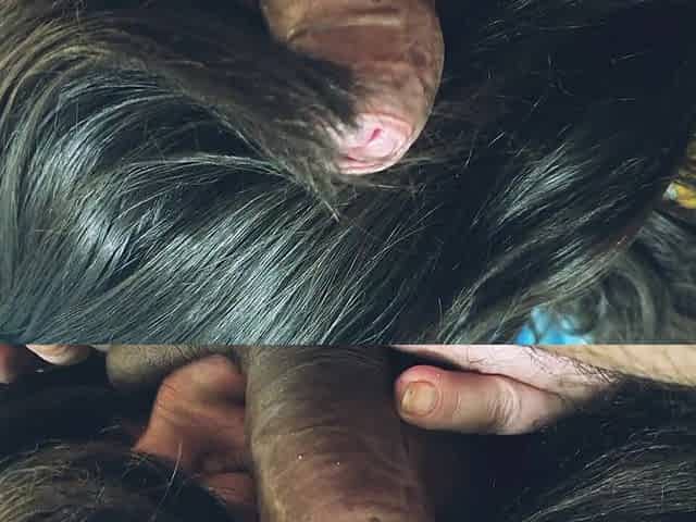 Milks a man with tits and hands