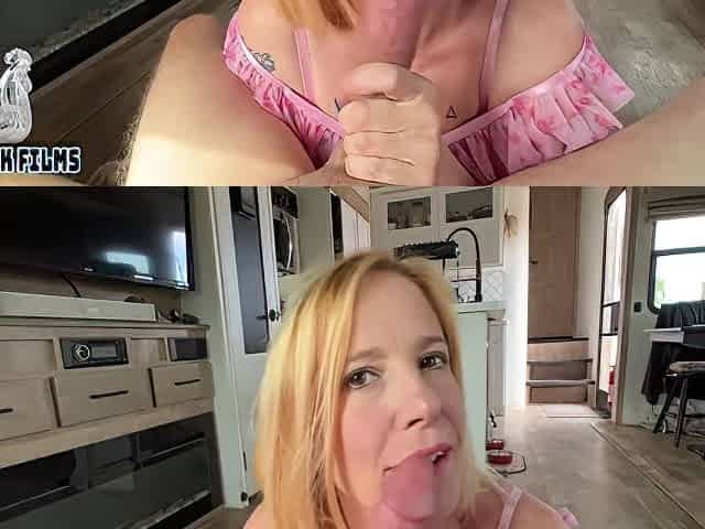 AuntJudysXXX - Your busty teacher lady. Josephine James sucks your cock in POV