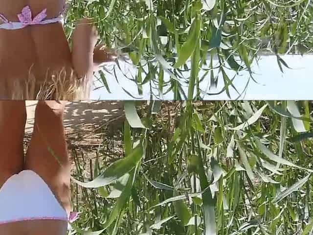 Cum over my pussy giving hand relief naked in the dunes on the public beach after stripping off and wanking cock
