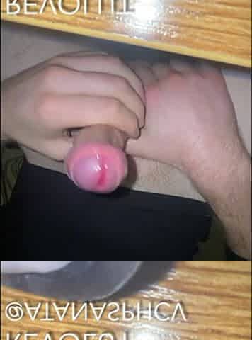 Wanking and cumming with my dick on the desk