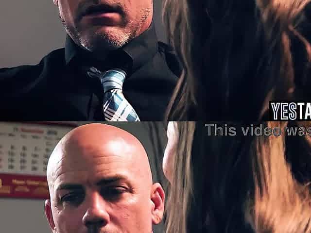 Small blond teen secretary blows and rides large jock aged boss in his office