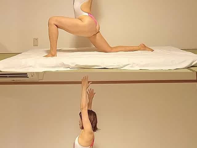 Yoga in a Japanese-style Room Wearing Competitive Swimwear