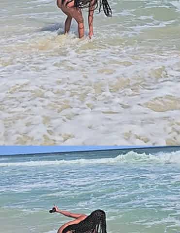 Latina Wife Enjoys Sex on the Beach, Shows off in Bikini, Masturbates, Cum on Her Tits and Hairy Pus