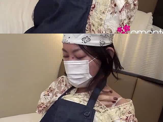 Mature woman Kahojukujo gets off under a white apron with a wall dildo and a fake penis