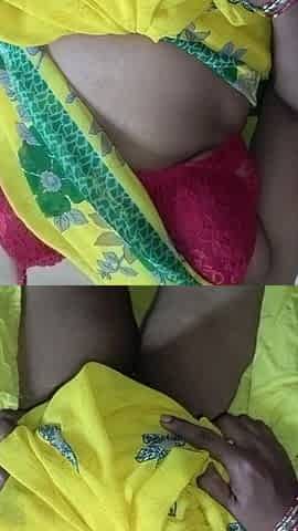 Desi Saira Yellow Saree Home Alone Fingaring