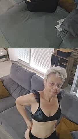 Mature Katherina in the fitting room trying on bras with her big natural tits.