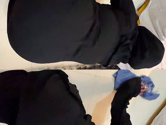 Arab Hot Maid Stuck When She Clean Under Bed - Big Ass Hijabi Girl Wear Abaya Niqab & Panty