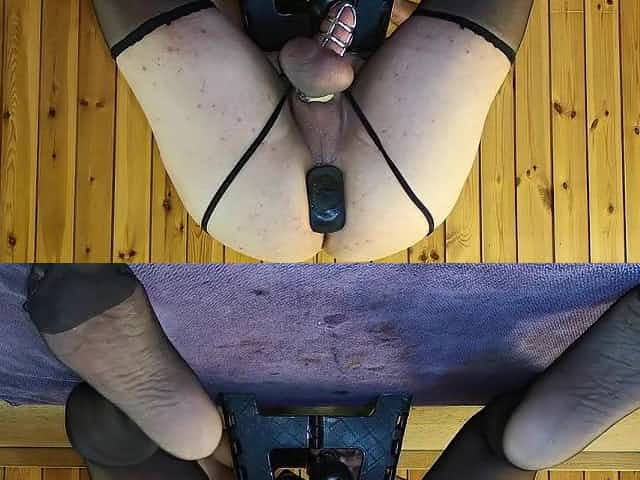 Cumming in Chastity like a admirable sissy. Plugged and Caged