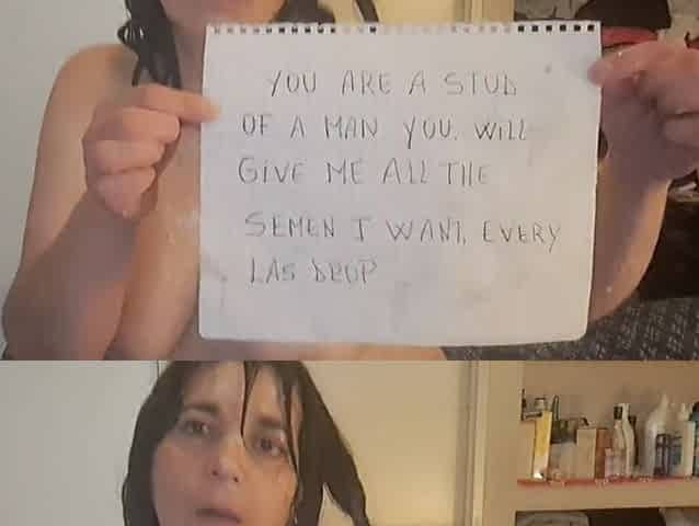 Mature MILF Brushing Her Teeth with Thick Milk