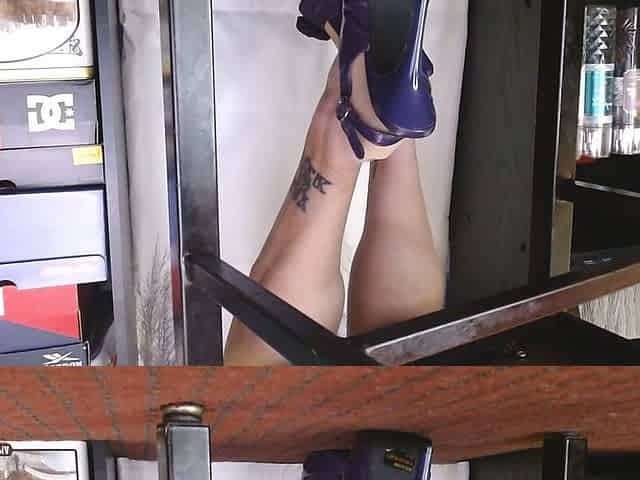 Shoeplay While Wearing No Show Liner Socks Sling Back Purple