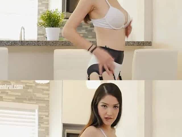 Kinky Brunette Stocking Slut Cutie Jericha Jem Fingers her Tight Hot Wet Slit