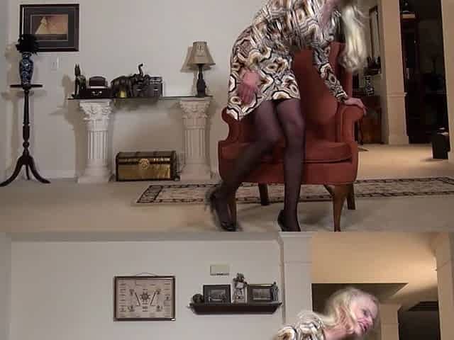 Sexy Secretary Strips off Panties Fingers Pussy in Black Nylons and Heels